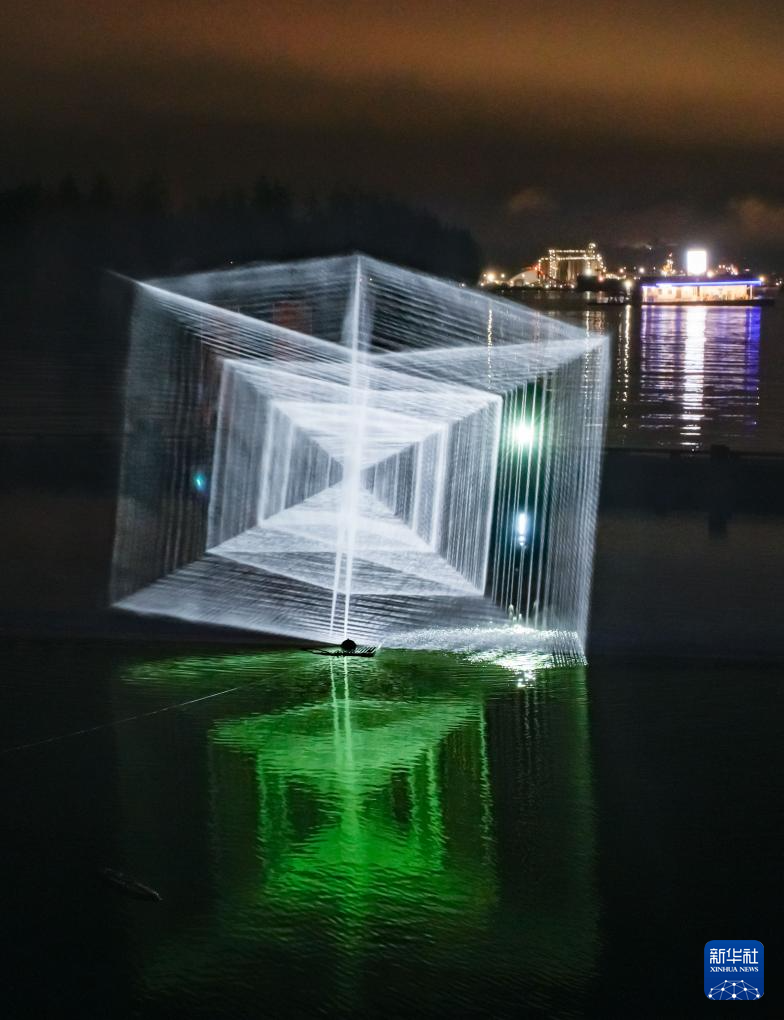 这是11月9日在加拿大温哥华灯光节上拍摄的一个使用全息投影创作的灯光装置。