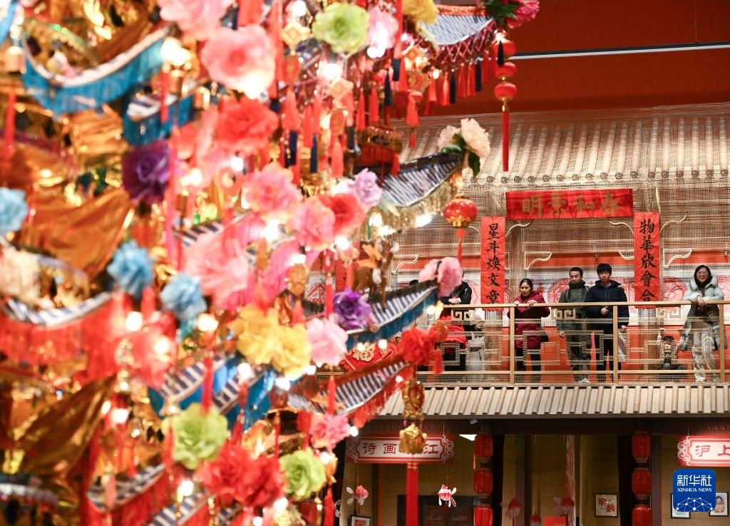 12月21日,观众在展厅内沉浸式体验“热闹街市”。