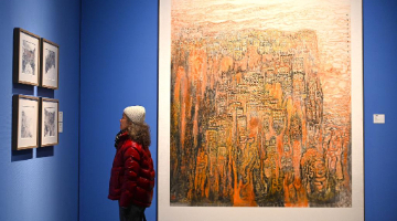 1月3日,在位于山东省巨野县的巨野县书画院工笔画绘制室,绘画师樊玉梅展示自己的作品。