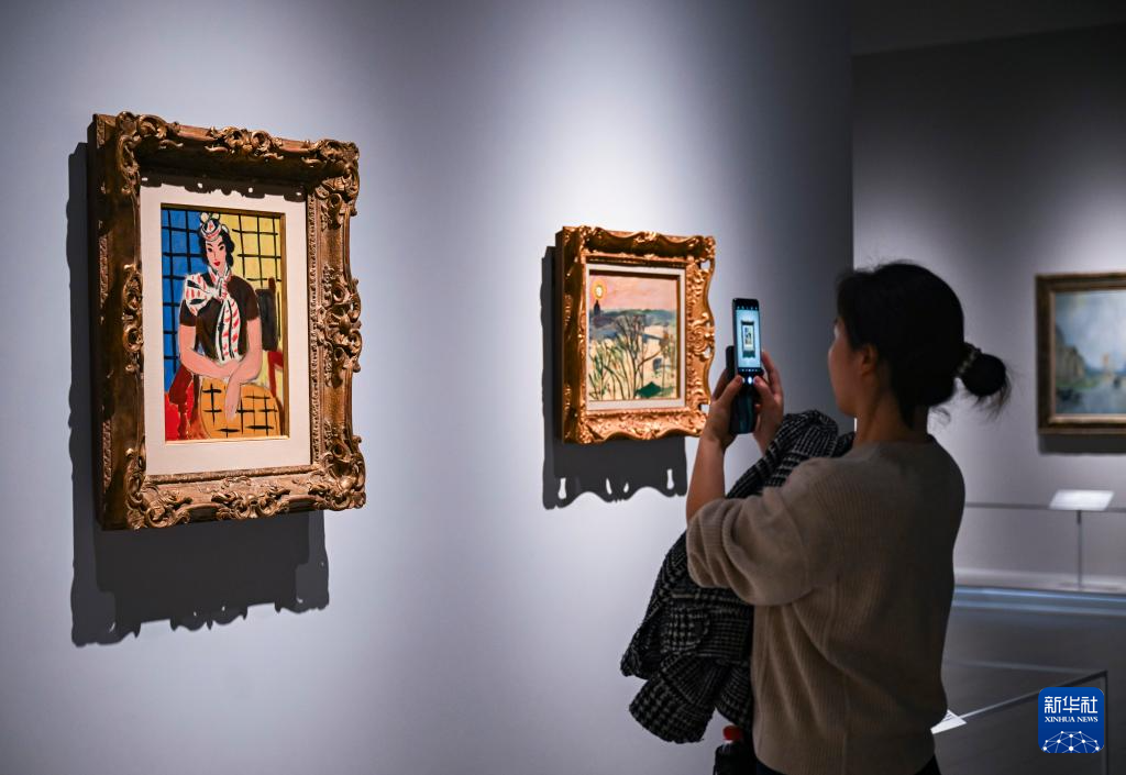 1月21日,媒体人员在“印象·派对”艺术大展拍摄马蒂斯的作品《戴围巾的女子》。