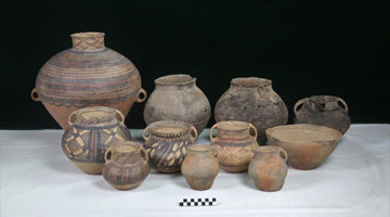 2月19日,柯翔祥(左二)在位于德清乾元镇的“缂金堂”内向工作室成员展示他收藏的老缂丝作品。