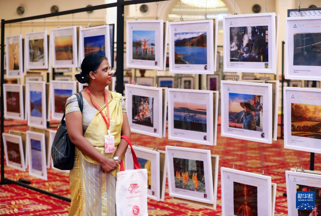 6月6日,在斯里兰卡科伦坡,参观者在总理府欣赏2025斯里兰卡-中国文化摄影展。
