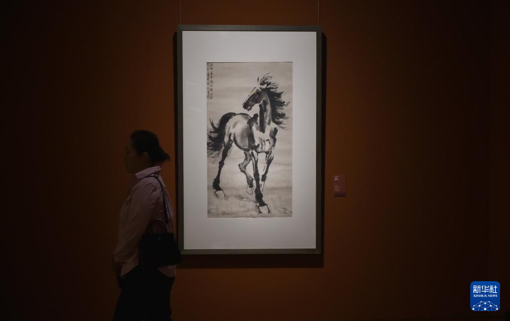 这是8月25日在中国美术馆拍摄的徐悲鸿创作的《战马》。