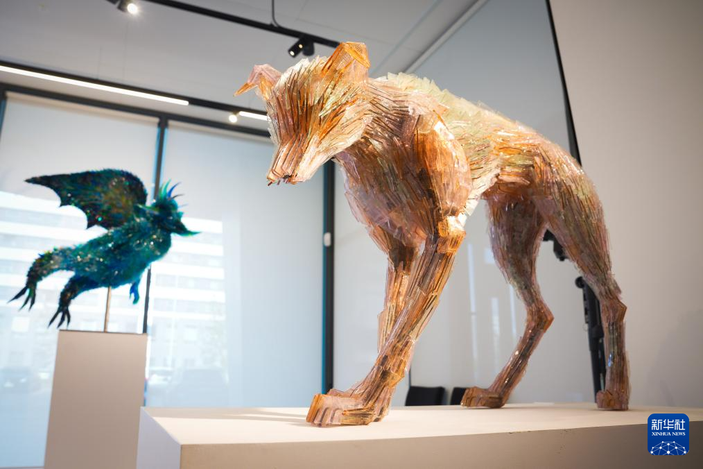 这是8月29日在波兰首都华沙的乌尔申努夫文化中心拍摄的玻璃雕塑。