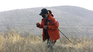 11月12日,张航在昆明市海晏村收集瓦猫影像资料。