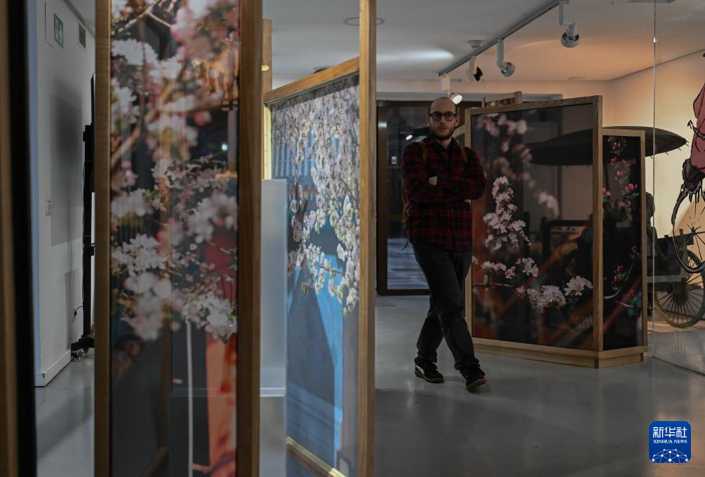 12月16日,在西班牙马德里中国文化中心,参观者在“安善萃锦——中式生活美学展”上参观。