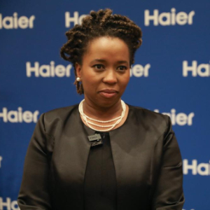 2月2日,在南非约翰内斯堡举行的海尔集团旗下子公司海尔智家产品发布活动上,南非豪登省政府执委会成员武伊斯瓦·拉莫豪帕接受新华社记者采访。