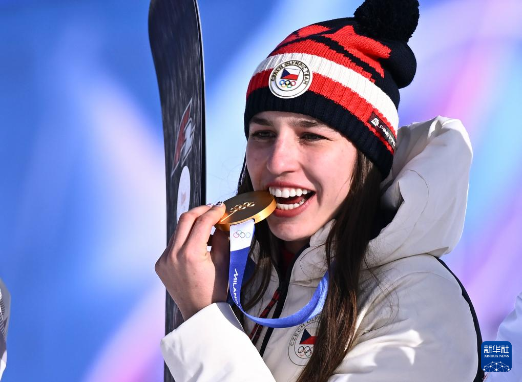当地时间2月8日,在意大利利维尼奥举行的米兰-科尔蒂纳冬奥会单板滑雪项目女子平行大回转决赛中,捷克选手马德罗娃获得冠军。