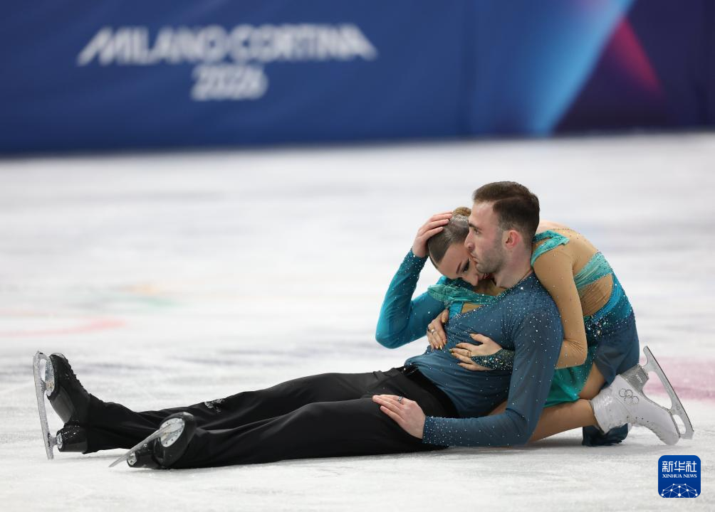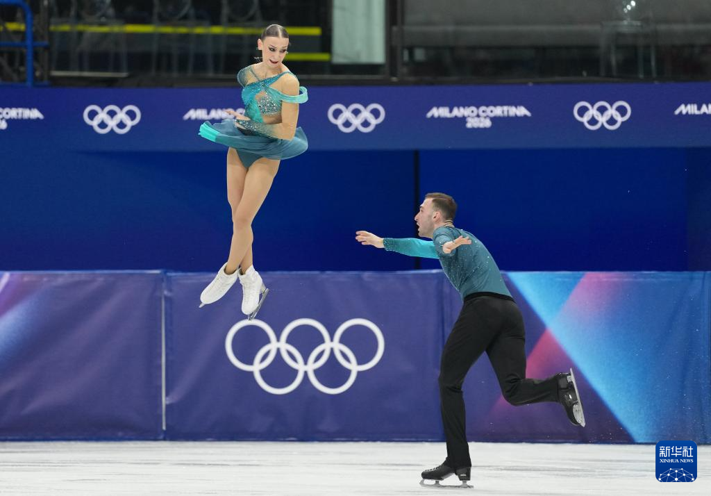 2月8日,意大利队组合萨拉·孔蒂(右)/尼科洛·马西在团体赛双人滑自由滑比赛中。