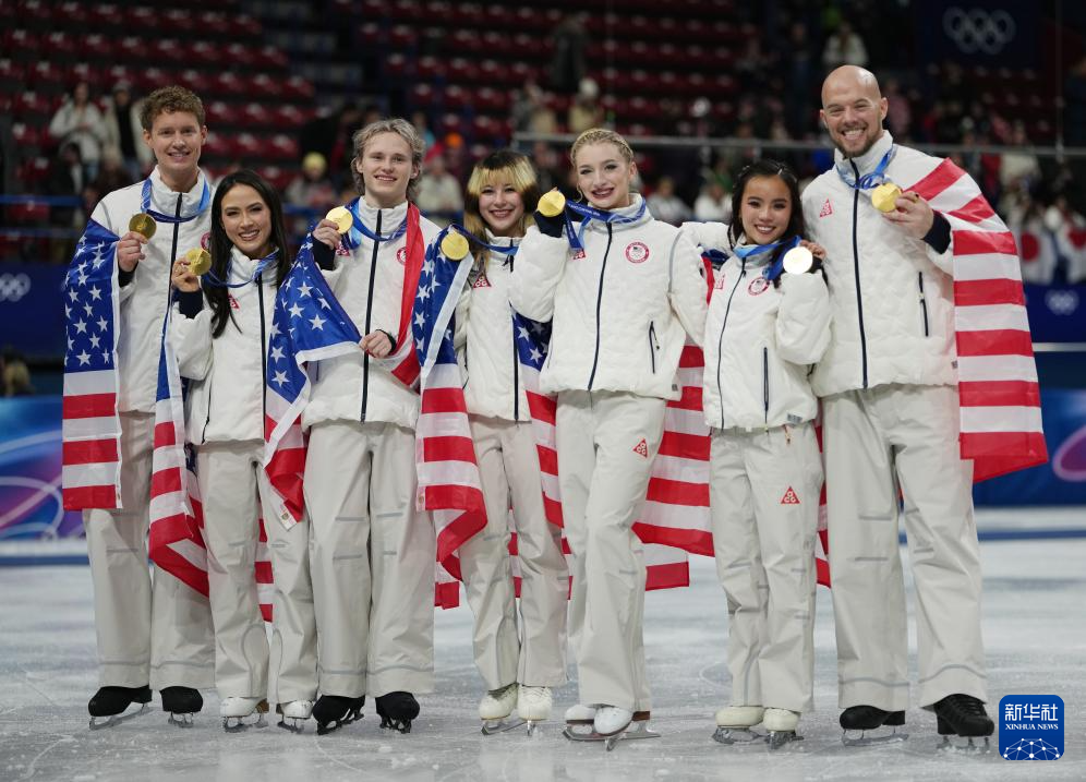 当地时间2月8日,米兰-科尔蒂纳冬奥会花样滑冰项目团体赛在意大利米兰举行。美国队获得冠军,日本队获得亚军,意大利队获得季军。