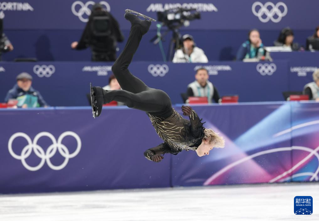 2月8日,意大利队选手里佐在团体赛男单自由滑完赛中。