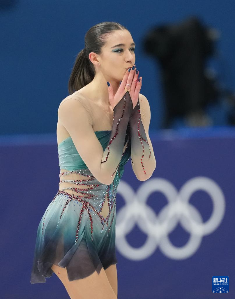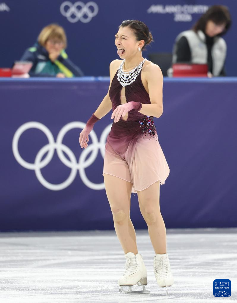 2月8日,日本队选手坂本花织在团体赛女单自由滑比赛中。