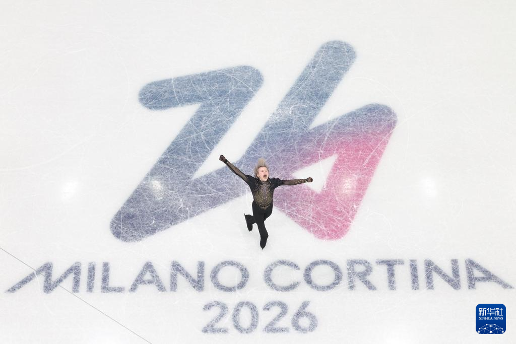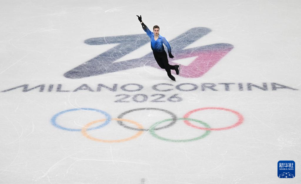 2月8日,意大利队选手里佐在团体赛男单自由滑比赛中。