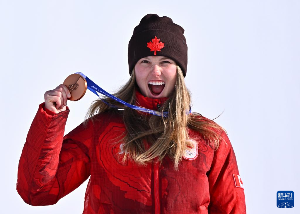 2月9日,季军加拿大选手梅根·奥尔德姆在领奖台上庆祝。