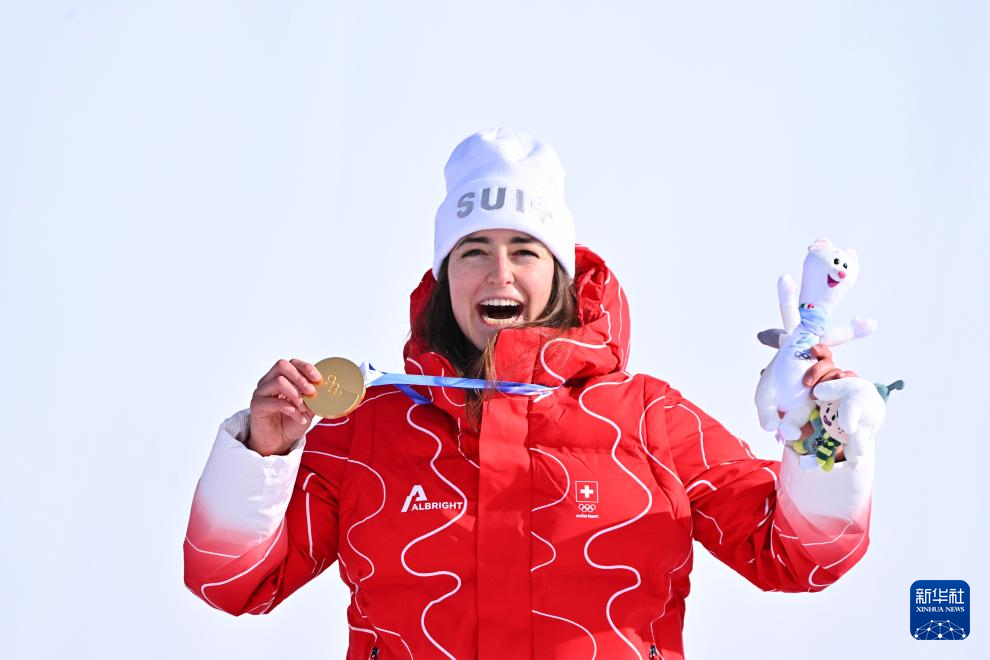 2月9日,冠军瑞士选手玛蒂尔德·格雷莫德在颁奖仪式上。