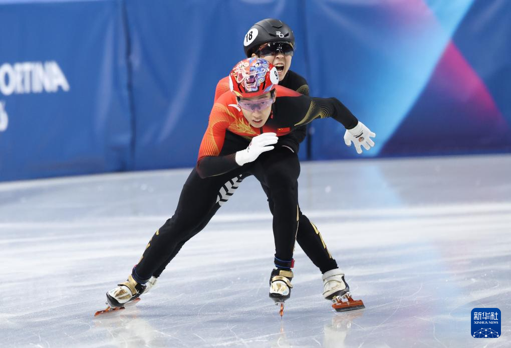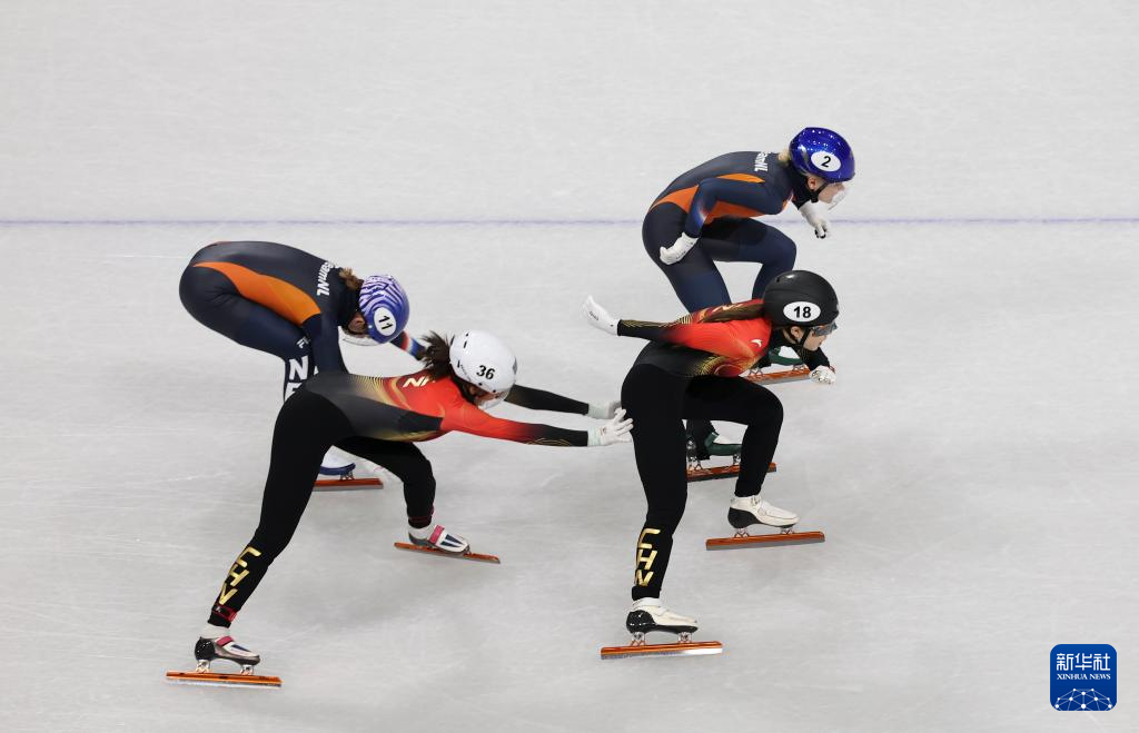 2月10日,中国队选手王欣然(左二)和公俐(右前)在比赛中交接。