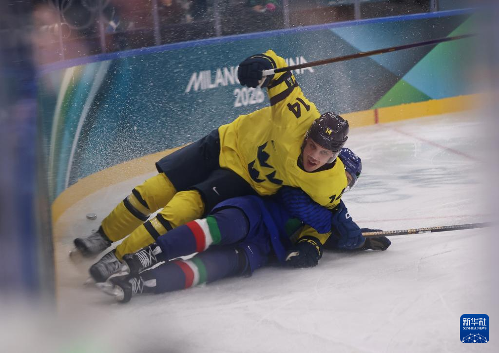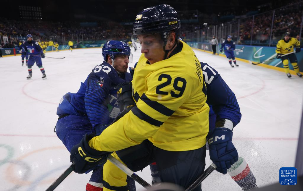 当地时间2月11日,在意大利米兰举行的米兰-科尔蒂纳冬奥会冰球项目男子小组赛B组比赛中,瑞典队5比2战胜意大利队。