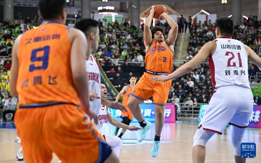 2月12日,山西汾酒队球员迪亚洛(上)在比赛中上篮。