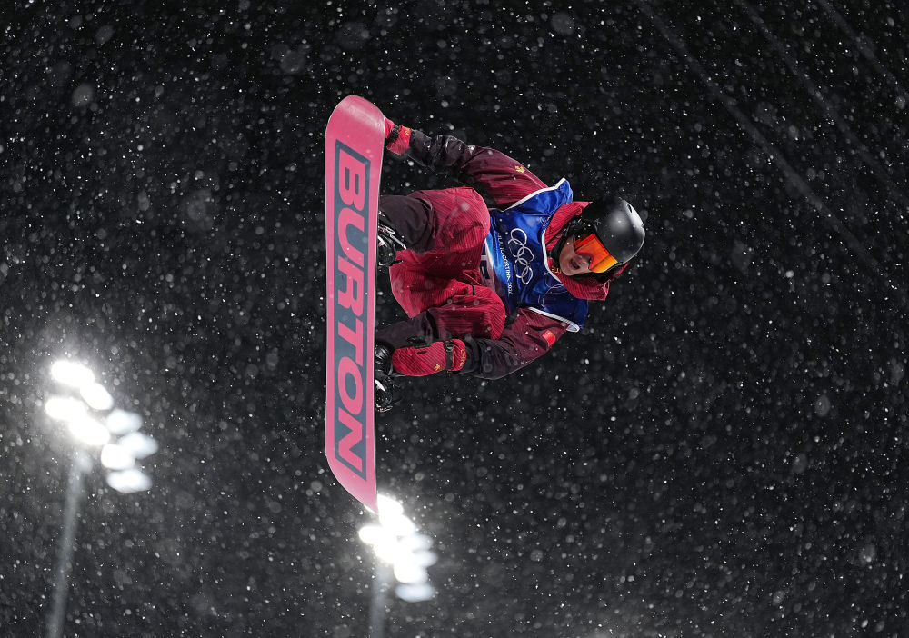 2月7日,苏翊鸣在单板滑雪项目男子大跳台决赛中。新华社记者 胡超 摄