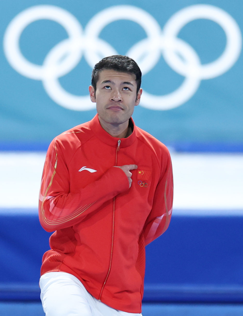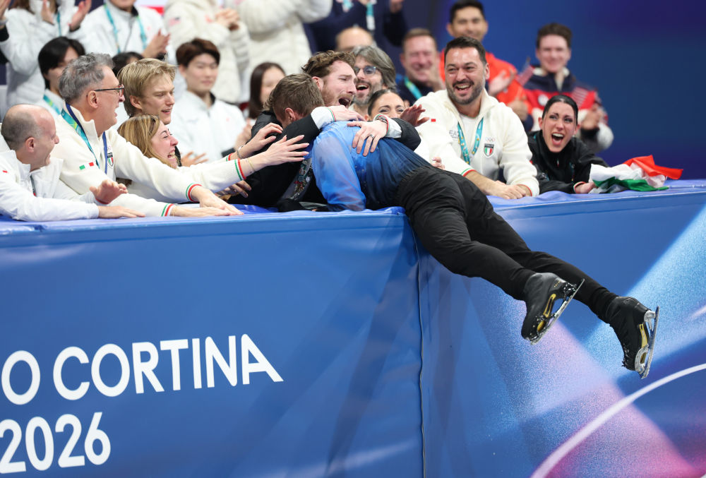 2月8日,意大利队选手里佐在花样滑冰项目团体赛男单自由滑完赛后。新华社记者 薛宇舸 摄