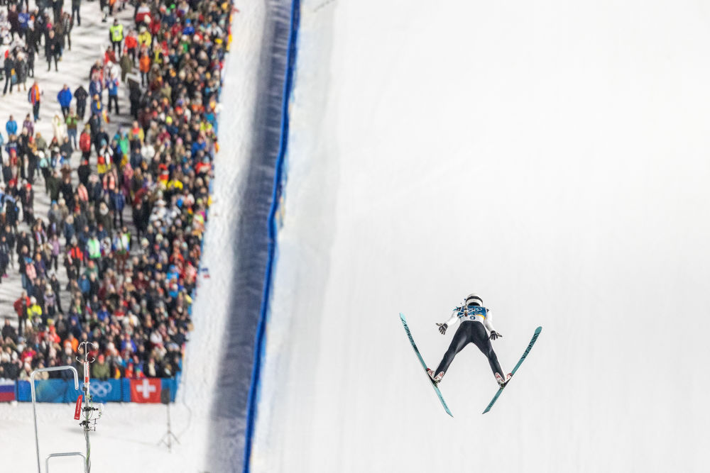 2月7日,斯洛文尼亚选手科瓦契奇在跳台滑雪项目女子个人标准台比赛中。新华社记者 黄伟 摄