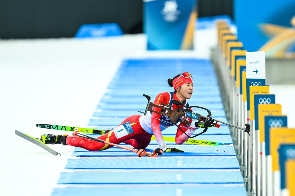2月11日,中国选手褚源蒙在冬季两项女子15公里个人赛中。新华社记者 江汉 摄