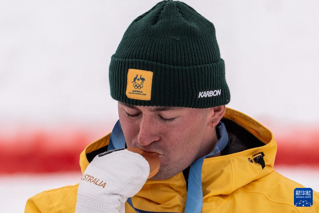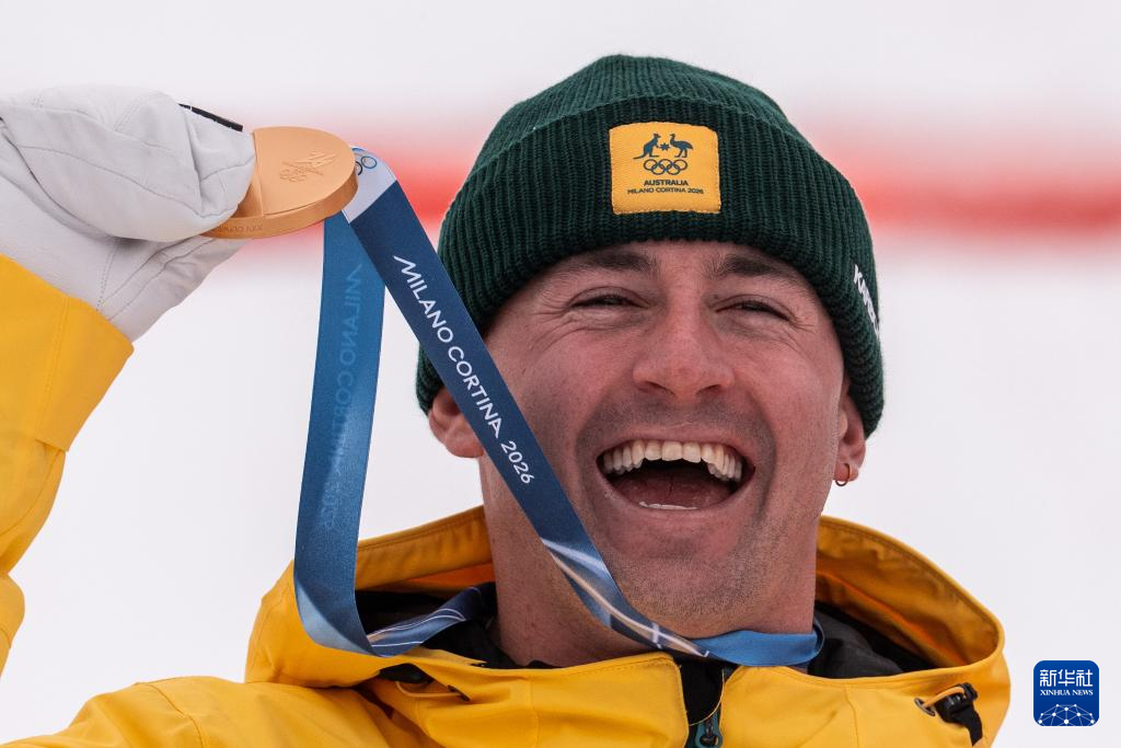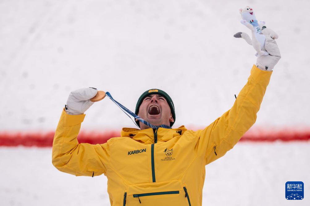 2月12日,澳大利亚选手库珀·伍兹(上)在比赛后庆祝。他获得冠军。