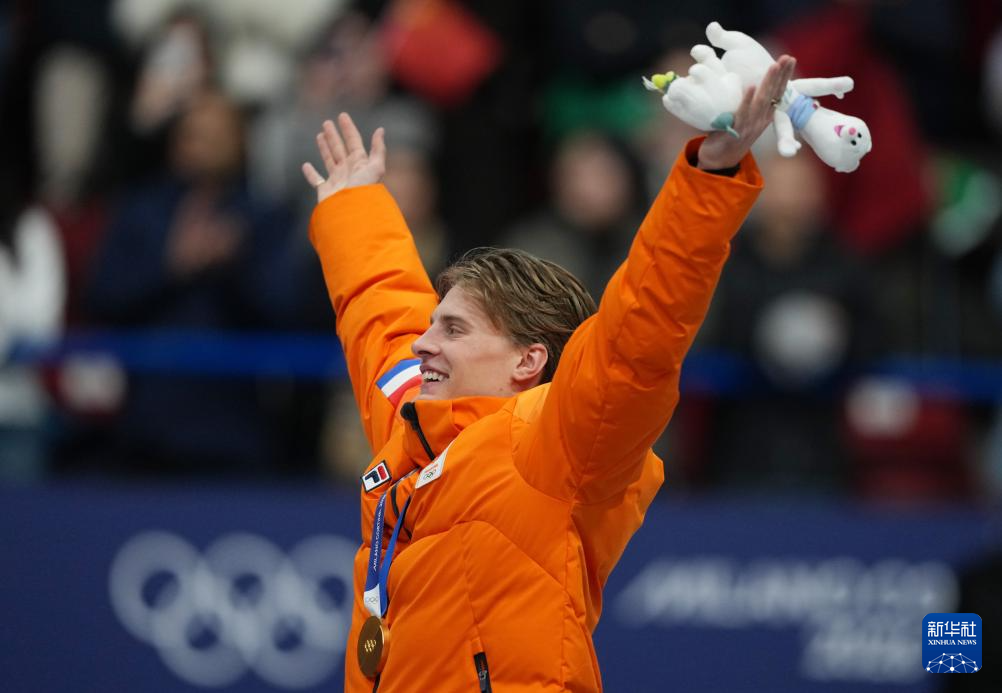 2月12日,冠军荷兰选手范特沃特在颁奖仪式上。