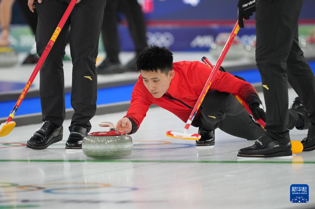 当地时间2月13日,在意大利科尔蒂纳举行的米兰-科尔蒂纳冬奥会冰壶男子循环赛中,中国队对阵挪威队。