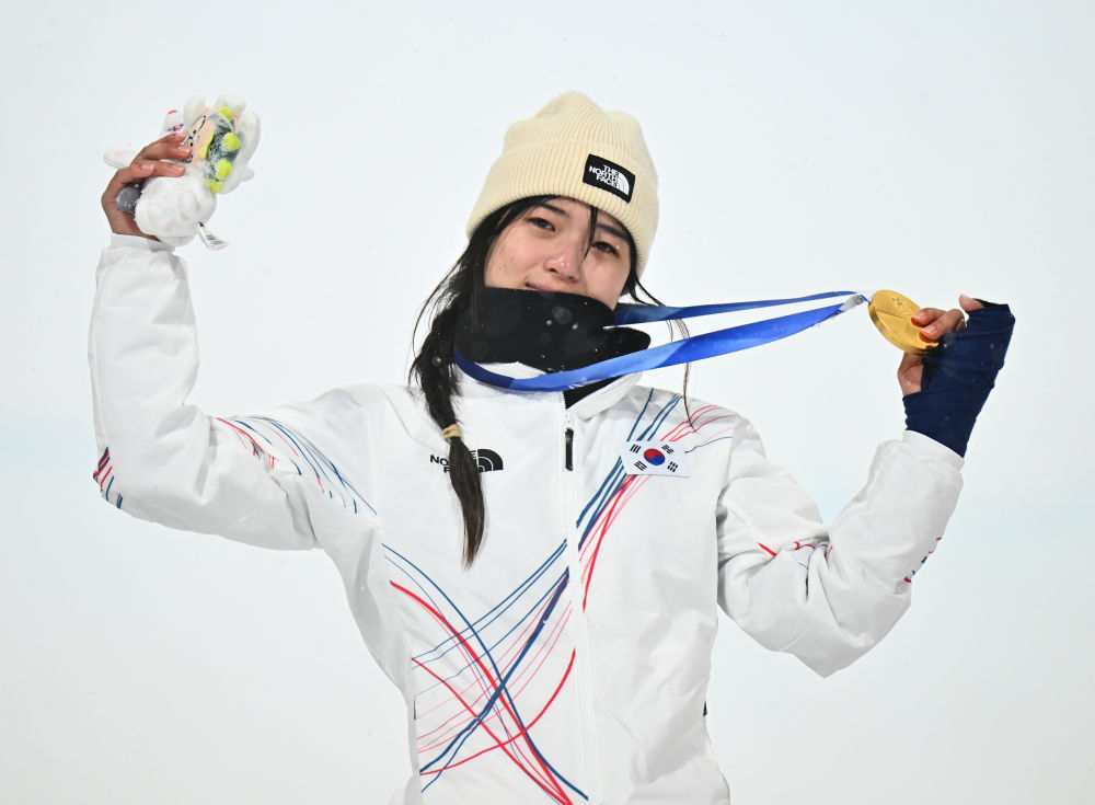 2月12日,韩国选手崔佳温在颁奖仪式上。新华社记者 张宏祥 摄