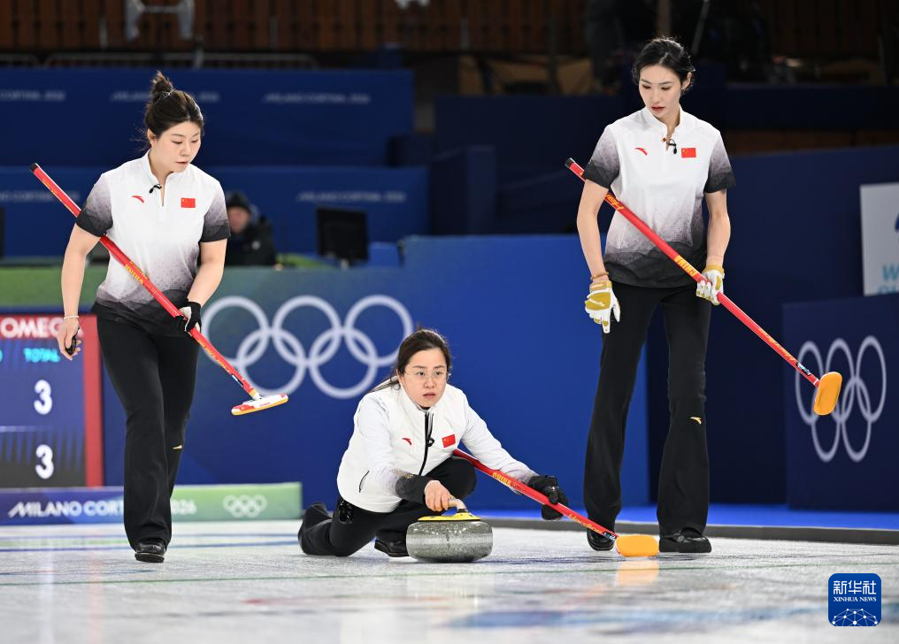 当地时间2月14日,在意大利科尔蒂纳举行的米兰-科尔蒂纳冬奥会冰壶女子循环赛中,中国队8比7战胜意大利队。