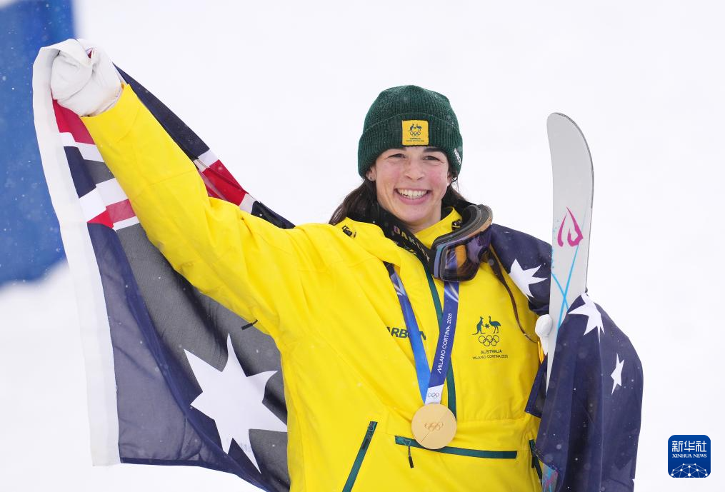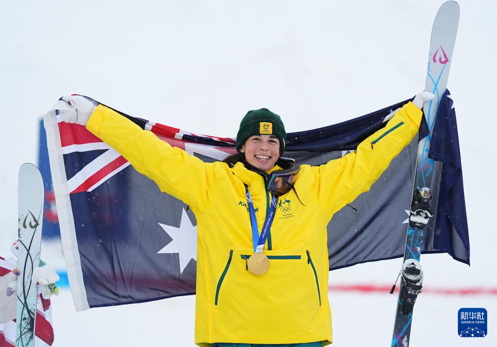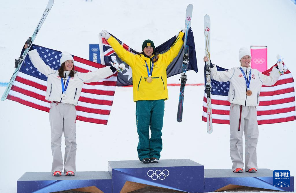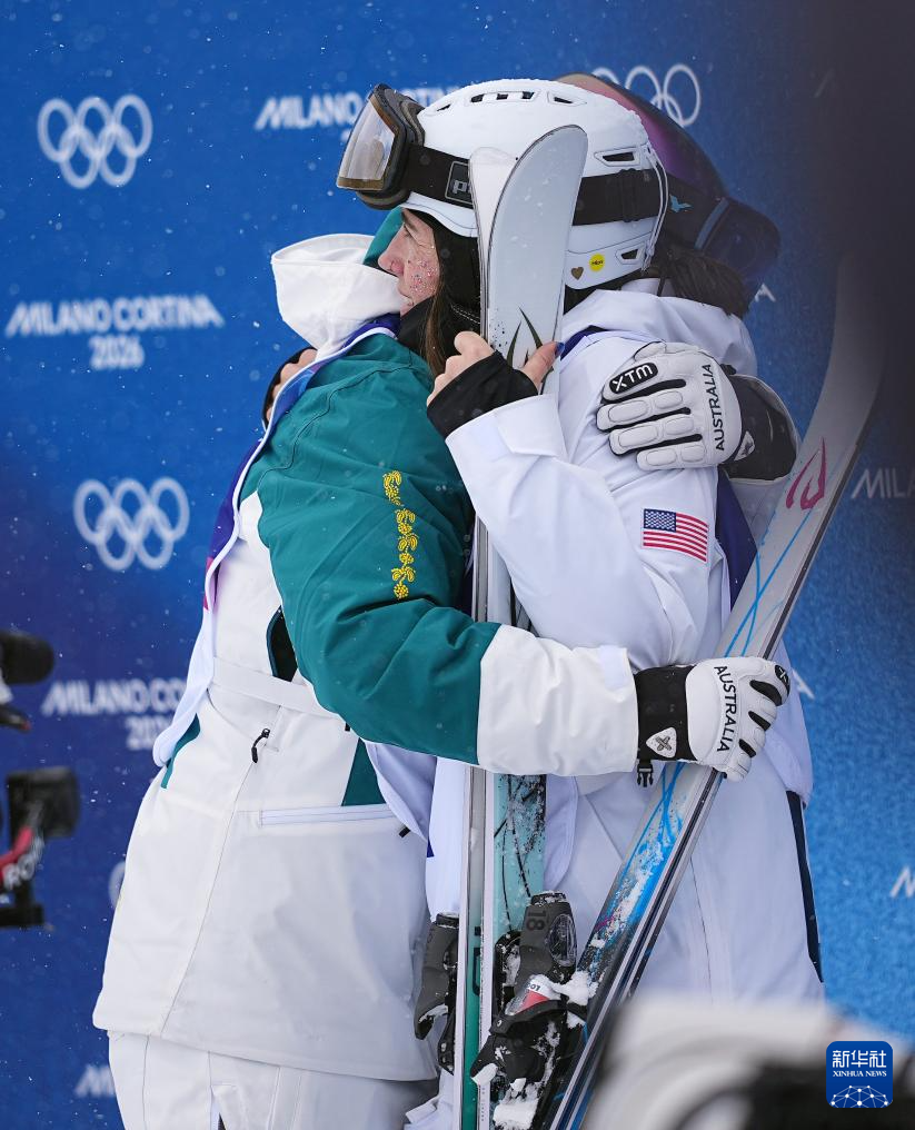 当地时间2月14日,在意大利利维尼奥举行的米兰-科尔蒂纳冬奥会自由式滑雪女子双人雪上技巧比赛中,澳大利亚选手安东尼获得冠军、美国选手考夫和莱姆利分别获得亚军和季军。