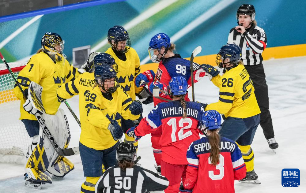 当地时间2月13日,在意大利米兰举行的米兰-科尔蒂纳冬奥会冰球项目女子四分之一决赛中,瑞典队2比0战胜捷克队。