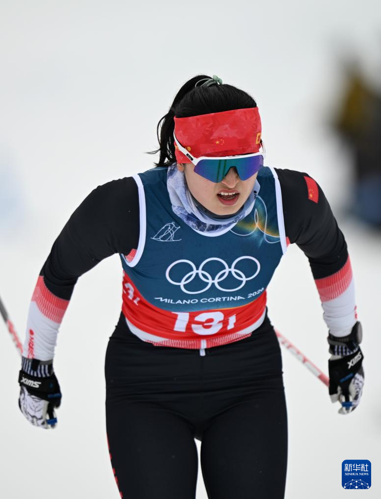 2月14日,中国队选手迪妮格尔·衣拉木江在比赛中。中国队获得第19名。