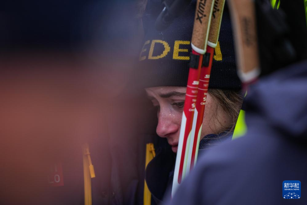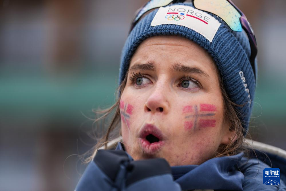 2月14日,挪威队选手克里斯廷·奥斯特古伦·福斯内斯在比赛后等待成绩确认。挪威队获得冠军。