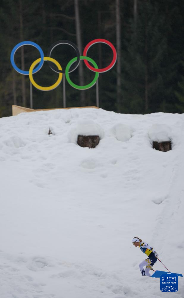 2月14日,瑞典队选手弗里达·卡尔松在比赛中。瑞典队获得亚军。