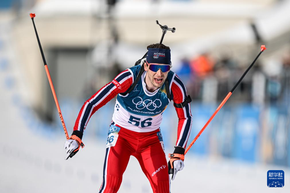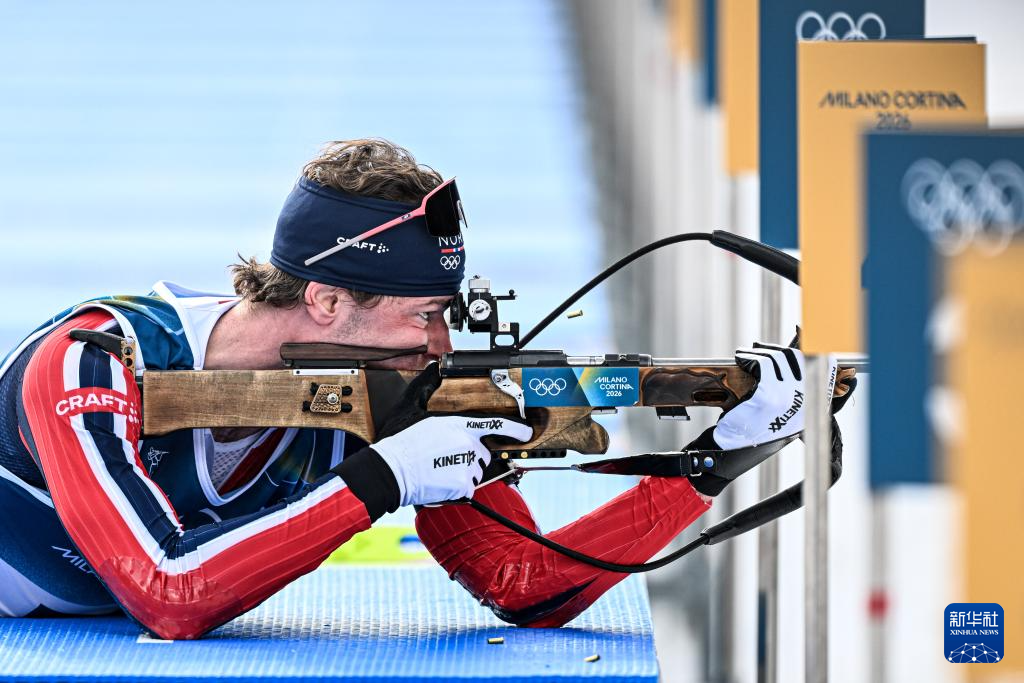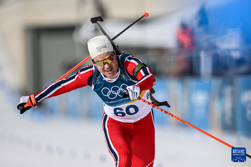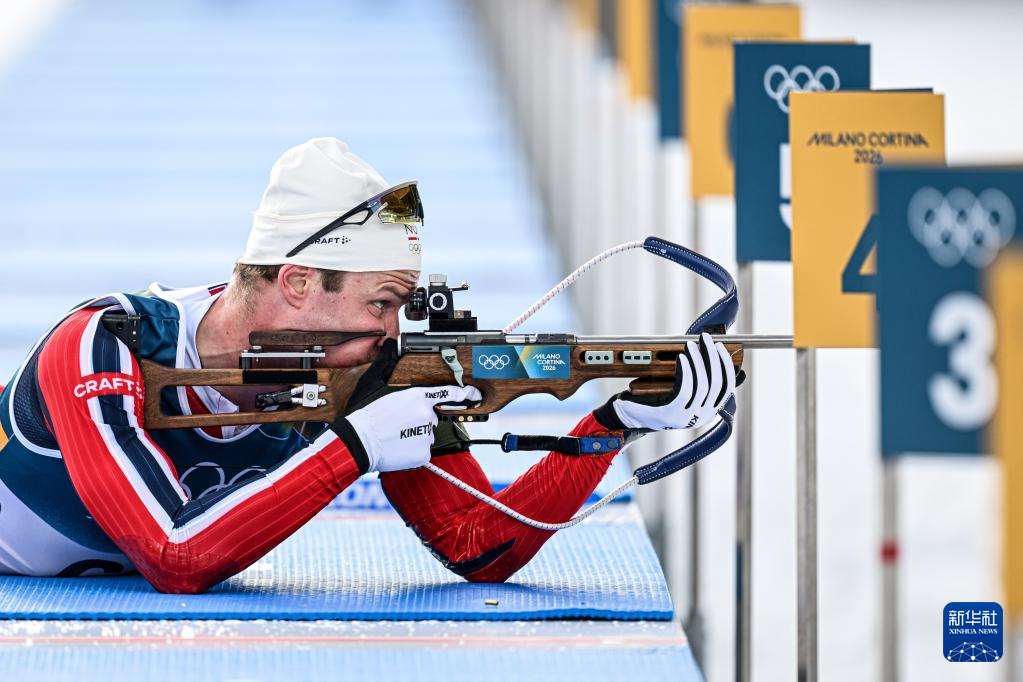 当地时间2月13日,米兰-科尔蒂纳冬奥会冬季两项男子10公里短距离比赛在意大利安泰塞尔瓦举行。