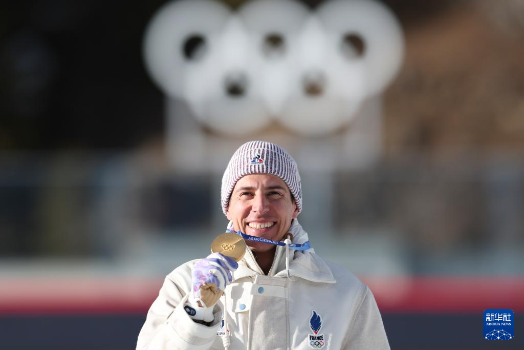 2月13日,冠军法国选手康坦·菲永·马耶在颁奖仪式上。