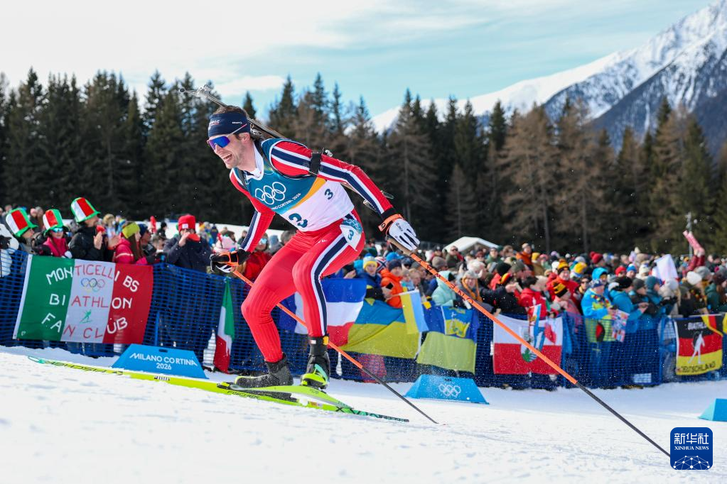 当地时间2月15日,米兰-科尔蒂纳冬奥会冬季两项男子12.5公里追逐赛在意大利安泰塞尔瓦举行。