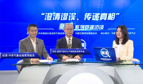 中央網(wǎng)信辦違法和不良信息舉報中心、中國互聯(lián)網(wǎng)發(fā)展基金會、中國互聯(lián)網(wǎng)聯(lián)合辟謠平臺正式推出“澄清謬誤、傳遞真相”系列辟謠訪談。第一期,我們邀請到中央氣象臺首席預報員張濤、國家氣候中心氣候服務首席專家周兵,為您解讀天氣、氣候等方面的話題。