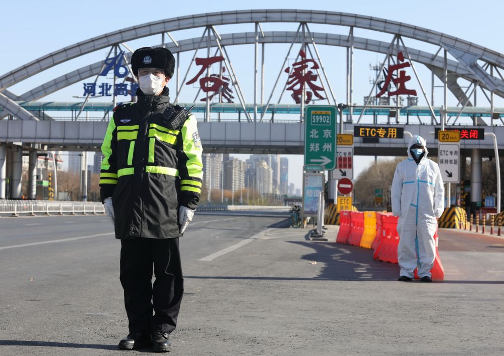 ↑1月7日,石家莊市公安局交通管理局裕華東警務站民警在新元高速石家莊裕華路進出口執(zhí)勤。