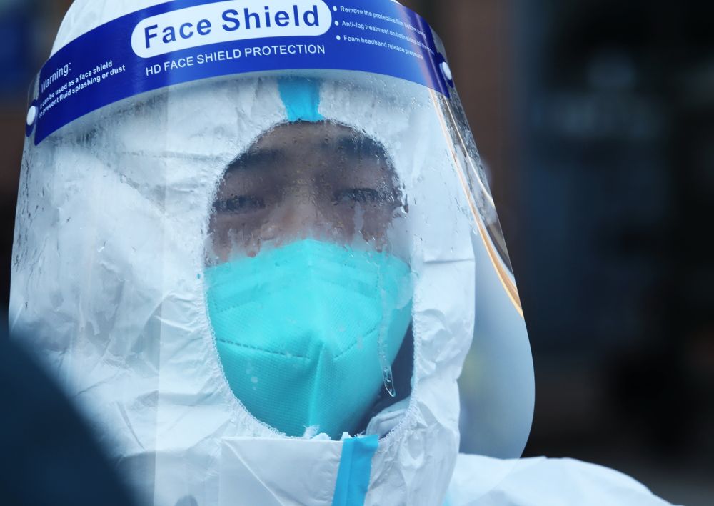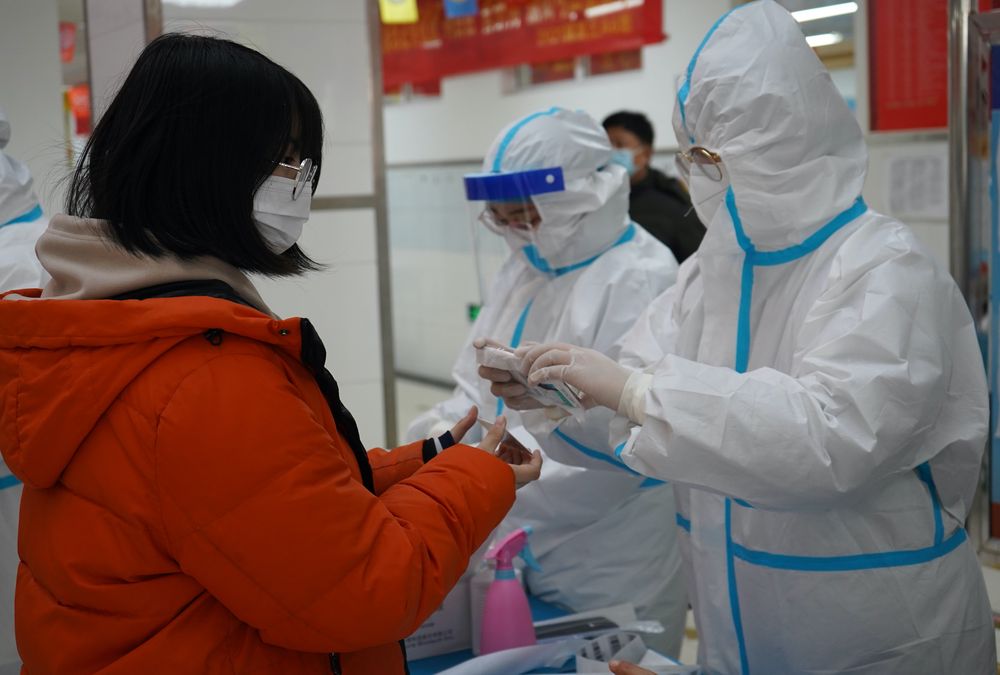 ↑1月7日,在石家莊市新華區(qū)錦繡乾城社區(qū),醫(yī)務人員在核酸采樣現場工作。