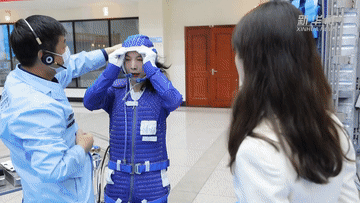 這里是離心機(jī)訓(xùn)練場(chǎng)。離心機(jī)由一個(gè)八米長(zhǎng)的旋轉(zhuǎn)臂和飛行模擬座艙組成,它所產(chǎn)生的離心力通常用地心引力的倍數(shù)表示。例如2G等于兩倍地球引力,大概相當(dāng)于過山車從最高點(diǎn)急速俯沖到最低點(diǎn)時(shí)的壓迫感。普通人最多能承受4G的離心力,而像亞平一樣的航天員則要進(jìn)行8G的過載訓(xùn)練。