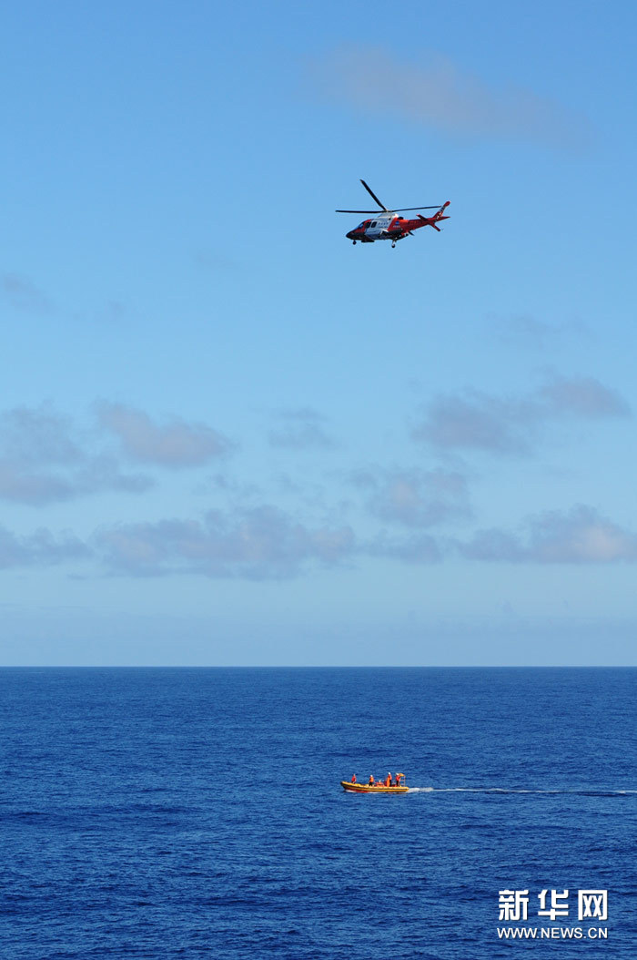 ????3月29日上午,在南印度洋,“海巡01”輪的船載直升機和小艇在疑似水域進行搜尋。