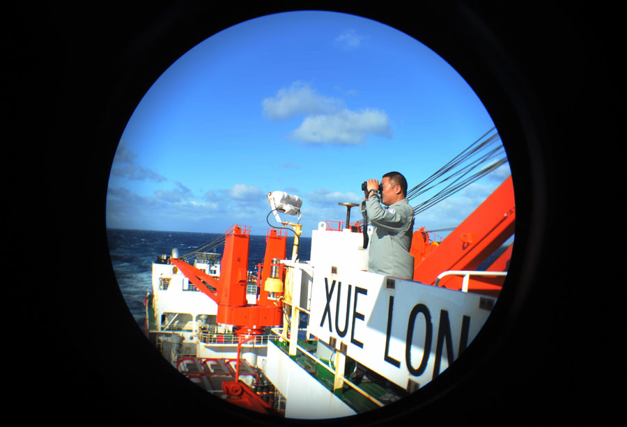????經中國海上搜救中心同意,“雪龍”號科考船28日下午全速趕往澳大利亞海事安全局最新調整的搜尋區(qū),并將與“海巡01”會合,進行中方船只現場指揮聯絡工作的交接。根據國際調查團隊向澳方提出的建議,澳大利亞海事安全局28日調整了搜索部署,搜尋范圍發(fā)生較大改變。新華社記者張建松攝