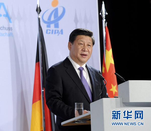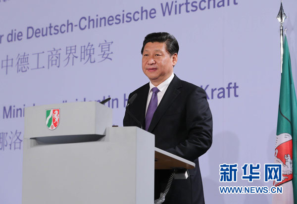??? 新華網(wǎng)德國杜塞爾多夫3月29日電(記者班瑋? 李斌)國家主席習(xí)近平29日在杜塞爾多夫出席中德工商界舉行的招待會(huì)并發(fā)表題為《把握中國機(jī)遇,實(shí)現(xiàn)共同發(fā)展》的重要講話,闡述對(duì)加強(qiáng)兩國經(jīng)貿(mào)合作的主張,強(qiáng)調(diào)中國全面深化改革、進(jìn)一步擴(kuò)大開放為中德合作帶來巨大機(jī)遇,表示堅(jiān)信,中德攜手,真誠合作,一定能夠成就各自美好夢(mèng)想。