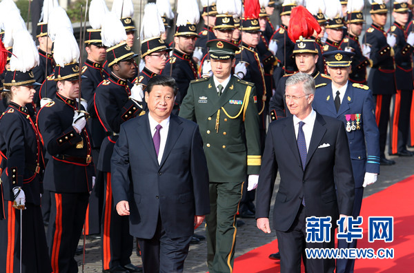 ????習(xí)近平表示,中比關(guān)系發(fā)展良好,比利時王室是先行者、奠基者和推動者,我們對此表示高度贊賞。比利時是歐盟總部所在地,是歐洲心臟,也是中國在歐盟的重要合作伙伴。這是我就任中國國家主席后首次訪問比利時和歐盟總部,具有特殊意義。我希望通過這次訪問,推動中比、中歐關(guān)系進一步發(fā)展。