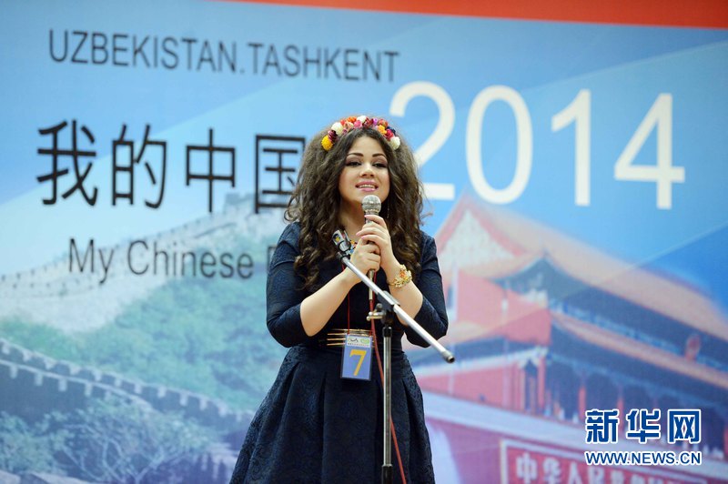 ????比賽分為自選題演講、朗誦比賽、知識問答、才藝表演四個環(huán)節(jié)。9名選手以“我的中國夢”為主題,從不同角度展現(xiàn)各自對中國文化的理解和對學習漢語的熱情。9名選手在2個多小時里通過朗誦中國詩詞、演唱中國歌曲等精彩表演受到現(xiàn)場觀眾的熱烈掌聲。最后來自塔什干東方學院學生詩琳獲得特等獎,她將代表烏茲別克斯坦前往中國參加“漢語橋”總決賽。
