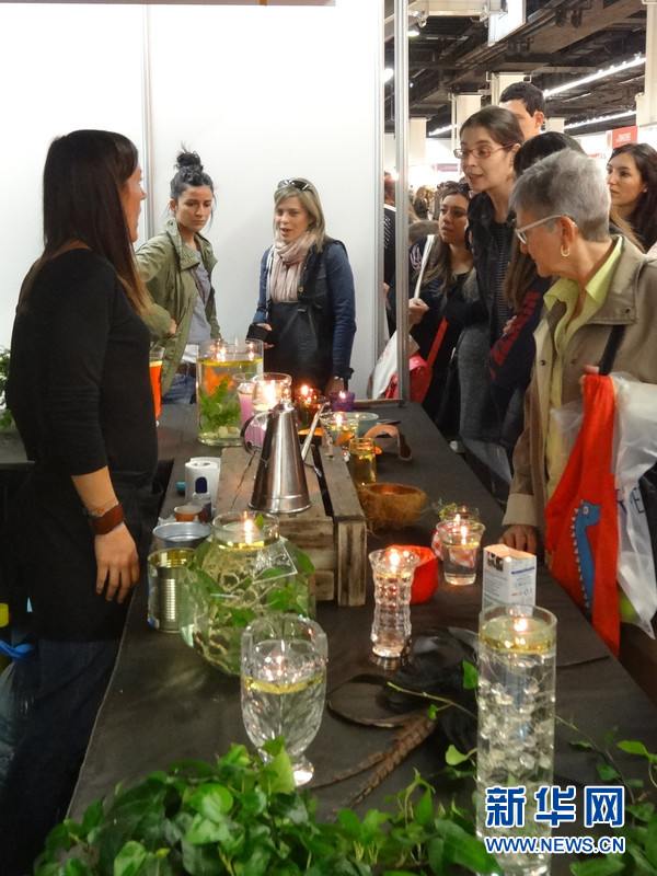 ????4月26日,巴塞羅那第一屆“手工藝品節(jié)”(Handmade Festival Barcelona)上,一些參展者向游客介紹如何進行手工制作。