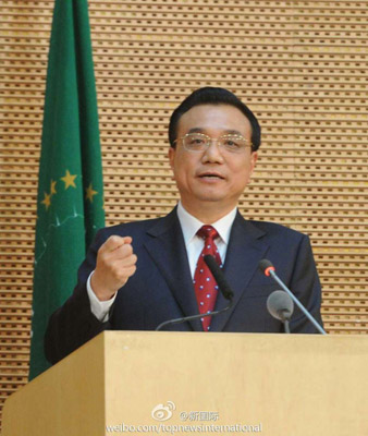 新華網(wǎng)北京5月6日電 據(jù)新華社“新國際”微博報(bào)道,李克強(qiáng)總理5日在非盟會(huì)議中心演講時(shí)談到:中國愿意毫無保留地與非洲共享先進(jìn)技術(shù)與發(fā)展經(jīng)驗(yàn),不斷加強(qiáng)中非生態(tài)環(huán)保領(lǐng)域合作,增強(qiáng)人文互動(dòng),同心共創(chuàng)中非關(guān)系更加美好的未來,在國際舞臺(tái)展示中非鋼鐵般的朋友情誼。